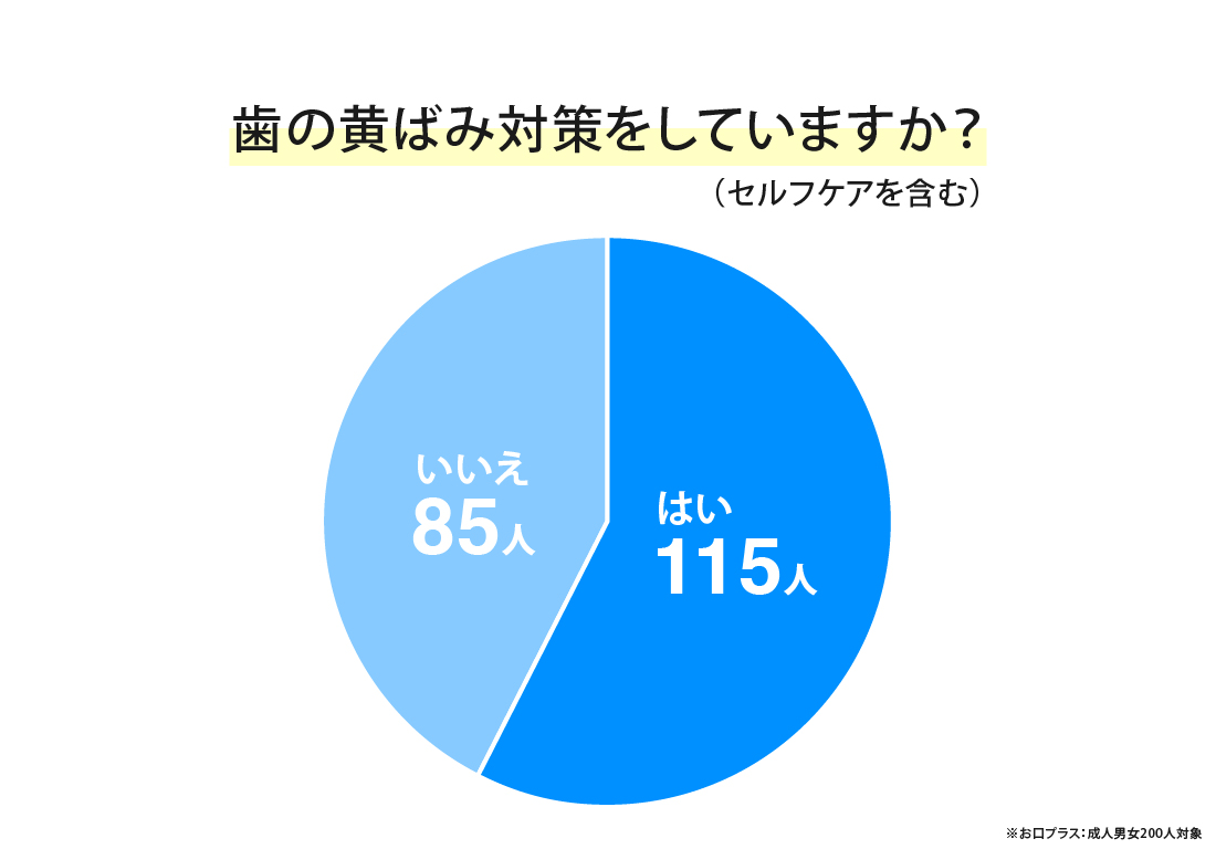 成人男女200人に対し、「歯の黄ばみ対策をしていますか?」というアンケートを実施しました。