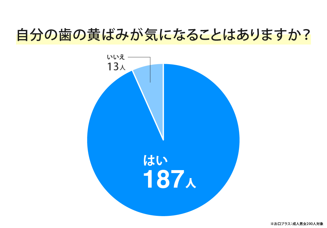 今回、成人男女200人を対象に「自分の歯の黄ばみが気になることはありますか?」というアンケートを実施しました。